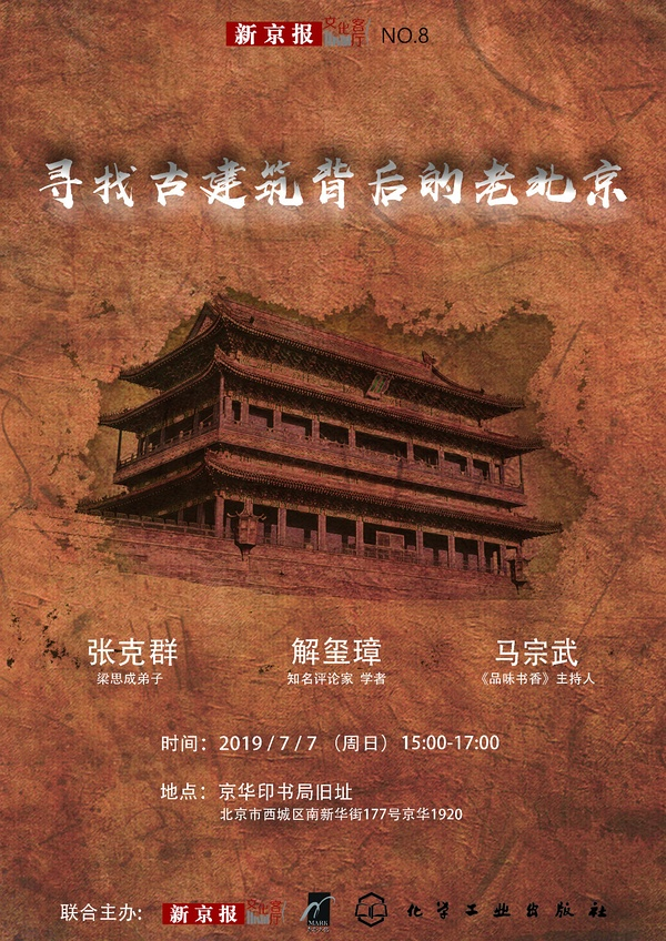 古老的北京城里融合了各个民族风格时代特色的建筑,也使得这座包容性极强的城市有着更丰富的文化背景。张克群“只为此生的建筑情结”而写就的《北京古建筑物语》集结三本:《红墙黄瓦》,说的是皇家建筑;《晨钟暮鼓》,讲的是宗教建筑;《八面来风》,说的是早期洋人在北京盖的建筑。周日下午,张克群与知名学者解玺璋一起为大家寻找古建筑背后的老北京。140处北京古建筑为什么如此与众不同?千年古建筑背后有哪些人?那些事?且听建筑大家梁思成先生亲传弟子张克群为您解说。