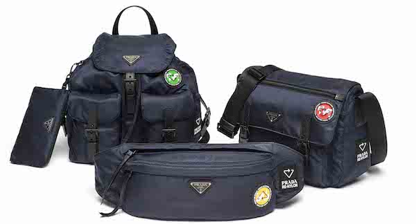 Prada再生尼龙系列推出六款经典产品,包括男士和女士系列:腰包、单肩包、手提包、行李包及两款背包,全系列产品均由环保材料打造。强调品牌传统的Prada三角形徽标也进行了独特处理,寓意回收利用。