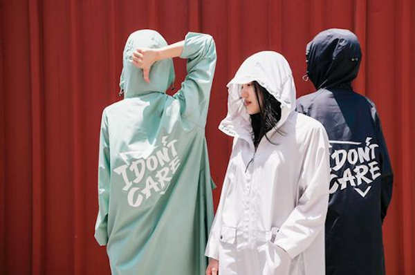好玩的是,在乎衣背后的Slogan遇水会变色,从“I don‘t care”变成“I do care”。目前已上市的三种颜色灵感取材于极地冰川、城市森林、深海巨鲸。另有一款嫣然粉将于近日上市,灵感源于嫣然基金会倡导的对生命中有裂痕的孩子的在乎。