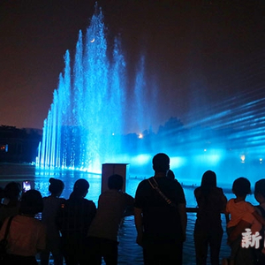 图说:游客在观看“天幕水极”水幕灯光秀 新民晚报周馨摄(下同)