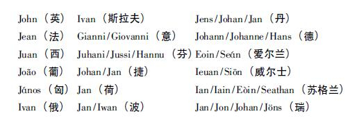 Paul(Paulus)和John(Yoħanna)也并不完全按照起源词汉译,这是因为这两个男性名衍生出了大量女性名。Paulus的女性形式为Paula(宝拉)、Pauline(保琳)、Paulina(宝琳娜)、Paulette(保莉特)等;Yoħanna的女性形式则有Jane(简)、Joanna(乔安娜)、Jan(珍)、Janey(珍妮)、Janie(詹妮)、Ivanka(伊万卡)等。女性名要是仍按起源词进行翻译,就不合适了,因此这些衍生词都是根据词汇本身读音进行音译的。