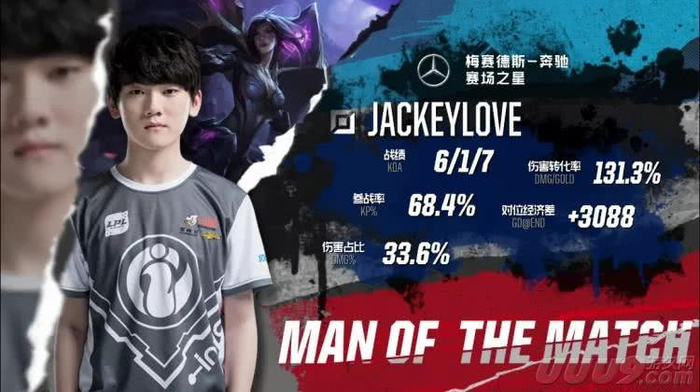 而iG这边,“阿水”Jackeylove再次站了出来,在后期团战中发挥关键作用,最终也拿到了MVP。