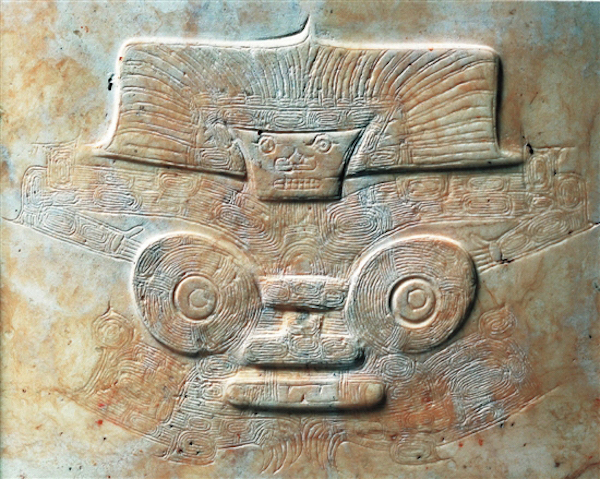 或繁或简的神人兽面纹,是良渚玉器最主要的纹饰主题,也是神崇拜最直观的表现。完整的神人兽面纹上部是头戴羽冠的神人形象,中间是圆眼獠牙的猛兽的面目,下部是飞禽的利爪。这种人与兽复合、人在复合中处于显要与主导地位的纹饰,展现了环太湖地区早期稻作文明阶段的信仰特征。