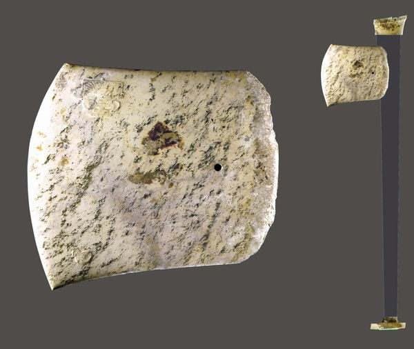 玉钺也是良渚玉器中的重要器类,被认为是王权或军事统帅权的象征物,主要出土于高等级的男性墓葬。反山十二号墓出土的象征王权的玉钺,器身两面都雕琢着凌驾于飞鸟之上的完整神人兽面纹饰,是“王权神授”的直白表露。