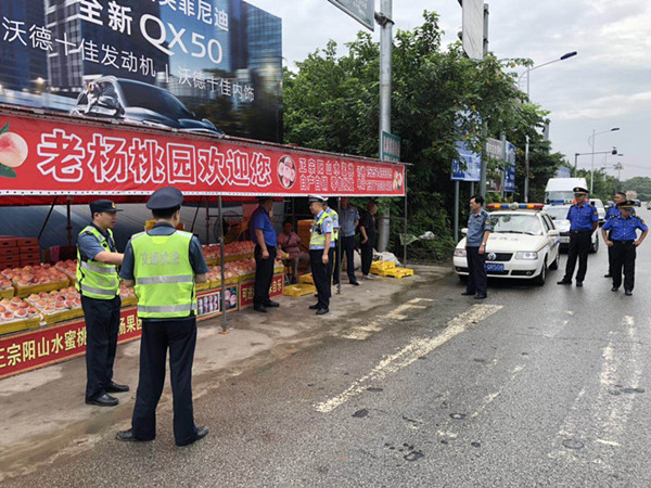 严重扰乱交通,无锡滨湖城管联合清理水蜜桃摊