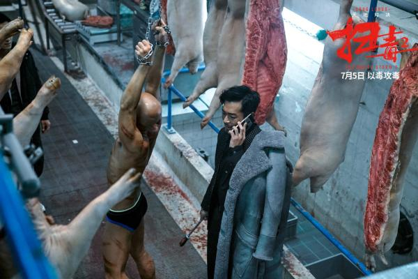 电影多处让人想起《杀破狼·贪狼》。《杀破狼·贪狼》里的生猪屠宰场以及存放死者遗体的冰库,都在《扫毒2》里出现。《杀破狼·贪狼》除了有托尼·贾和吴樾这样的功夫明星贡献若干场精彩武戏,古天乐亦苦练拳脚功夫而有所小成;《扫毒2》里的枪战戏,就只有TVB警匪题材电视剧的水准。当然影片也志不在此。而作为回馈大场面戏爱好者观众的厚礼,《扫毒2》最后交出了一场地铁站内和地铁轨道上的车辆追逐大戏,为此不惜一比一搭建了拍摄用的中环地铁站,燃烧经费燃烧在明面上,邱礼涛真是个实诚人。
