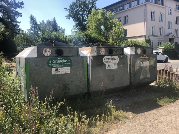 在德国,每个居民楼附近都有若干并排放置的棕色、蓝色、黄色和灰色塑料垃圾箱。这四种颜色依次对应生物垃圾(即剩菜剩饭等厨余垃圾)、纸张纸板垃圾、以产品包装为主的可回收物垃圾和其他垃圾。此外,每片居民区还设有几处分别回收绿色、棕色和透明玻璃制品的垃圾箱。没有押金的玻璃酒瓶通常会扔到那里。有押金的玻璃酒瓶和塑料水瓶则可以通过传送带运到各大连锁超市的自动回收机。自动回收机随后吐出的代金券可用于在超市付款或兑换现金。因此,在德国一些大城市的街头,时常能看到流浪汉和低收入者在垃圾箱里翻找有押金标志的塑料瓶和玻璃酒瓶。回收瓶子成了他们改善生活的一项“福利”。