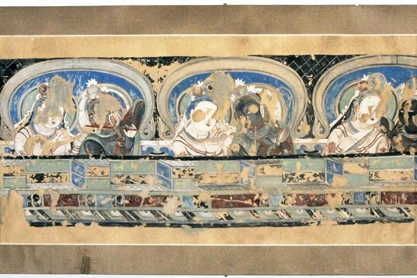 天宫伎乐图(临摹品 局部),南北朝(公元4—5世纪),克孜尔石窟38窟