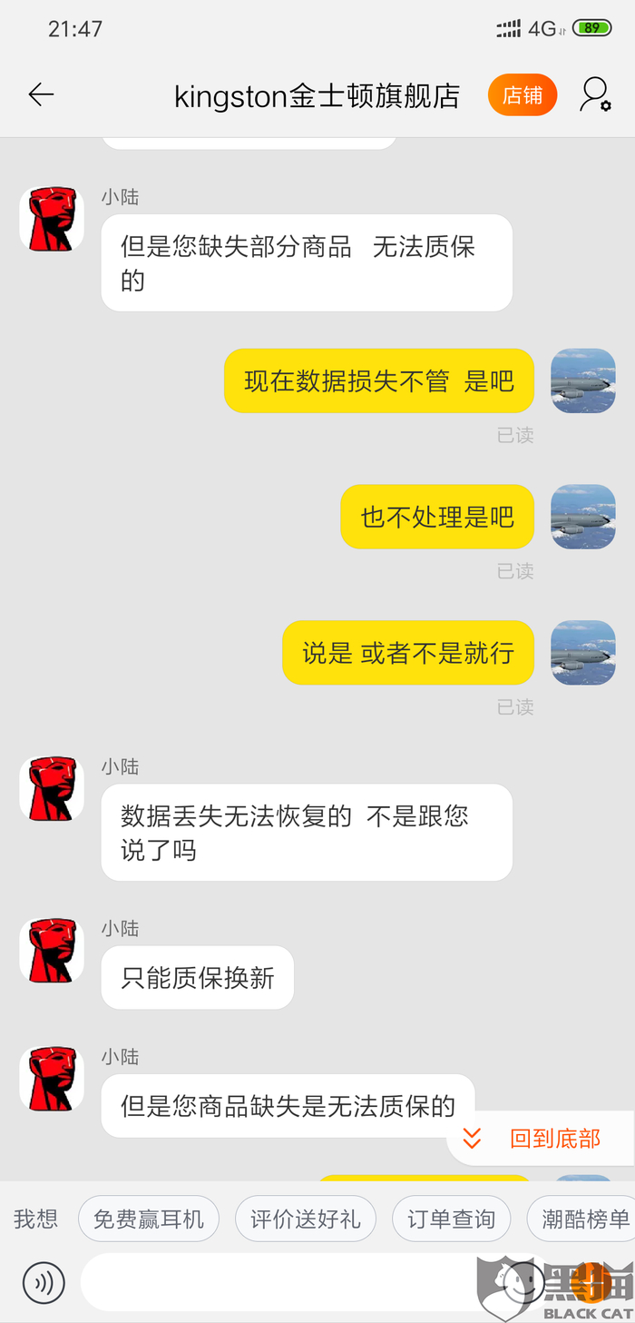 黑猫投诉:天猫kingston金士顿旗舰店产品U盘严重质量问题拒绝处理