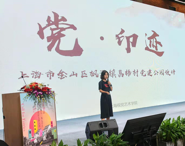 现场,怀揣梦想的大学生,光影为笔、年华作墨,运用图片、图表、多媒体等展示手法,以路演的方式分享了对于16个点位更新的设计,阐述项目背景、现有问题、改造方向、设计主旨等。最终,上海视觉艺术学院火煜设计的“昌梧村党建主题公园”设计方案获得一等奖。