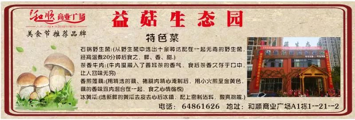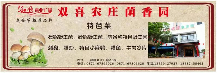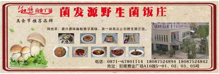 7月6日,一场关于野生菌饕餮大餐在晋宁开始,位于昆阳街道安居家园小区的和顺商业广场野生菌美食街开街了,开街时间一直持续到15日,野生菌美食街所有商家将为消费者提供相应不同的优惠,并有最高1000元的现金大奖等你拿。从昆明主城出发,沿路欣赏滇池美景,45分钟就可以到达,眼睛和胃同时得到满足...