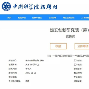 原标题:开始招聘啦!中科院筹建雄安创新研究院