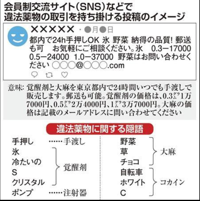 媒体揭露的违法药物交易隐语 图据日本《产经新闻》