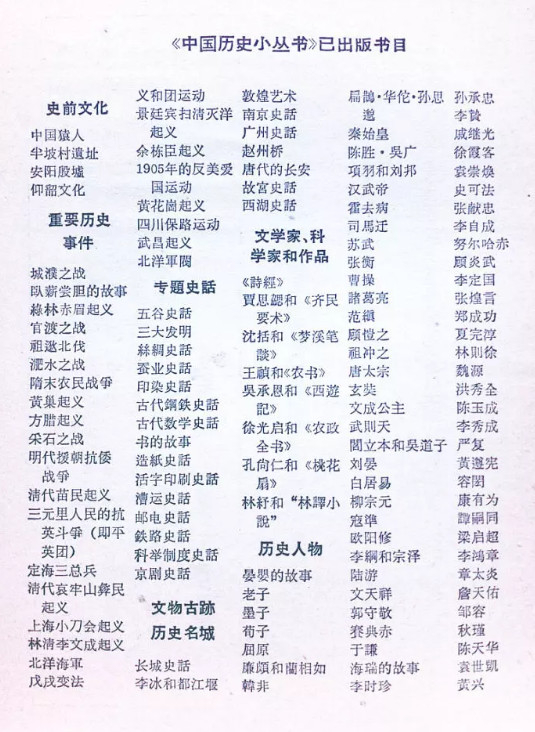 到1958年秋,时任北京市副市长的吴晗在一次北京市中学历史教师大会上,提议为中小学生编一套可以作为课外阅读的历史普及读物,得到与会者热烈响应,这便是“中国历史小丛书”的缘起。