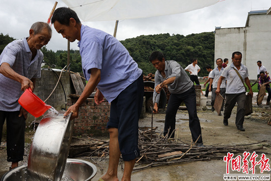 7月7日,上少寨,村民们为第二天典礼后的答谢宴做准备。他们为村里的这件盛事自发凑了不少钱。中国青年报·中国青年网记者 李隽辉/摄