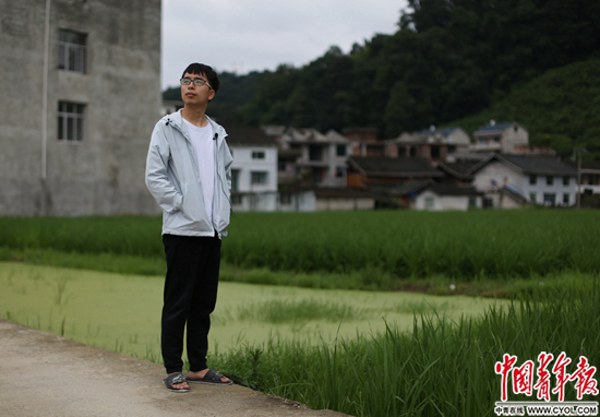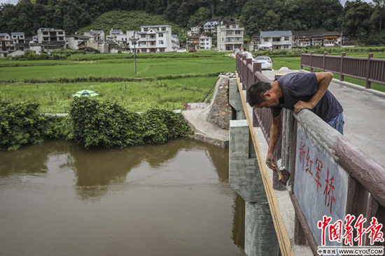 23岁的吴章宇站在自家新建的3层小楼附近,正对着新红军桥桥头。他刚从大学毕业,在上少寨的家中备考当地事业单位。中国青年报·中国青年网记者 李隽辉/摄