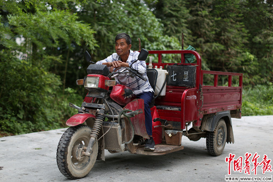 59岁的吴章标准备开车过新桥,把种的豆子、辣椒和苦瓜从上少寨送到县城儿子家去。中国青年报·中国青年网记者 李隽辉/摄