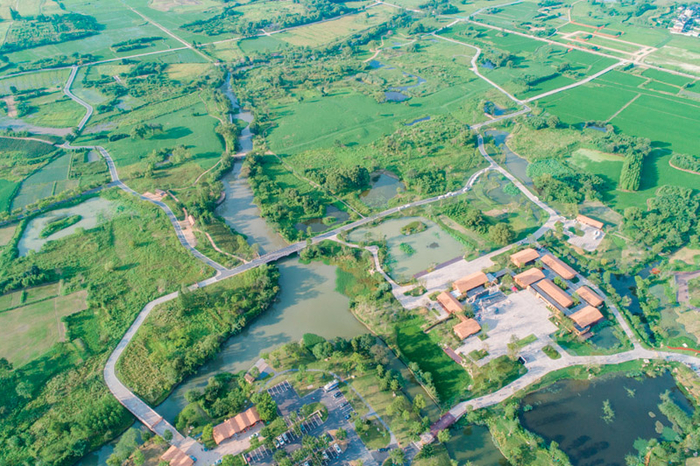 距离古城遗址2公里的良渚文化村,占地8平方公里,是一个成规模的主题旅游城镇。高晓松的晓书馆就开在那里,不远处是安藤忠雄设计的良渚文化艺术中心,这座“三”字型的建筑也是设计师在杭州的第一件作品。作为文旅项目,风情街、饭店、水上乐园、五星级宾馆、高尔夫俱乐部等,在良渚文化村也是应有尽有。