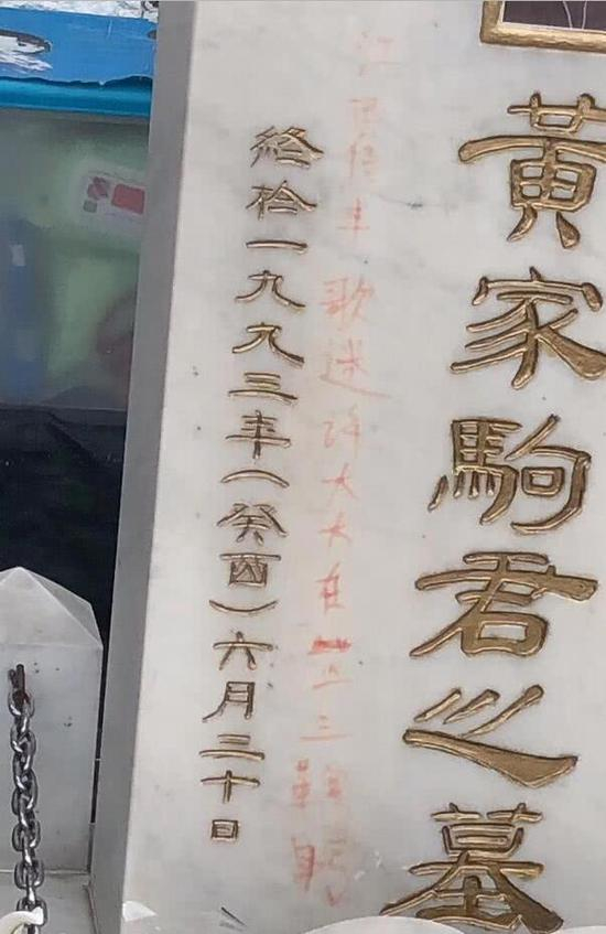 黄家驹墓碑遭人写红字 歌迷紧急处理仍有痕迹