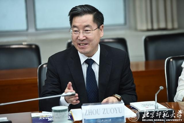周作宇对来宾表示热烈欢迎,并欢迎北师大校友、加拿大劳瑞尔大学国际部主任杨河回访母校。他简要介绍了北师大的近年发展,特别介绍了校区建设规划、全球发展战略规划进展等情况。他表示,北师大历来注重学生的能力建设,致力于提升学生的全球化视野。未来,两校可以在教师教育、本科生培养等领域开展交流与合作。