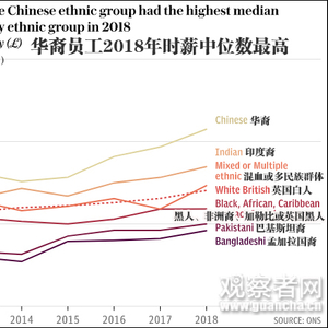 原标题:英政府研究各族裔薪资差距:华裔比白人高三成,印裔排第二