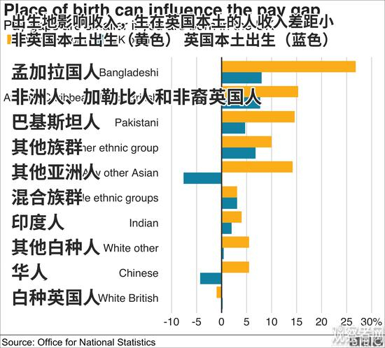 报告中还透露了一个重要信息,出生地对同一族群的薪资影响也极大。“受过英国教育或以英语为母语的人,会比不具备这些条件者赚得多。”