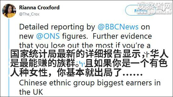 [文/观察者网 陆雨聆]“有个残酷的现实是,即使在今天,族群仍在薪资问题上仍发挥着很大作用。”谈及英国的收入情况,英国劳工联合会议秘书长奥格雷迪(Frances O‘Grady)曾说过这样一句话。