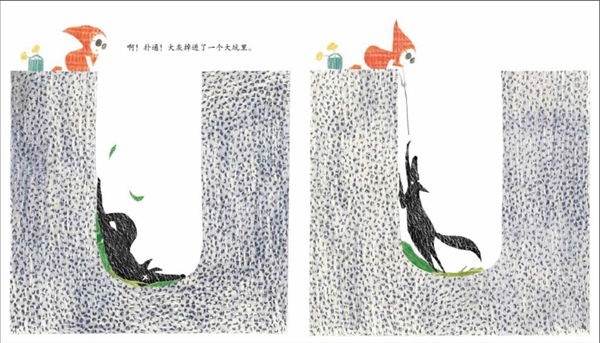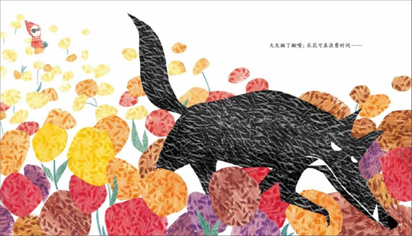 澎湃新闻:王晓明老师给《小红帽》写的导读里提到,在这本书的封底,我们以为已经被小红帽感化的大灰狼,决绝地丢弃了小红帽给它包扎伤口的衣角,他认为这体现了图文之间“一个故事各自表述”的意图,对此,能不能谈谈你自己的看法?