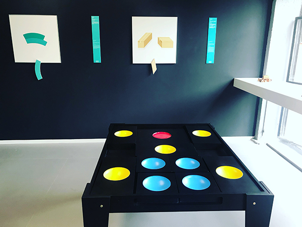 原来这就是“贾斯特罗错觉”,两条等长的曲线,下面的一条比上面一条看上去长一些。同样,两个完全一样的扇形环,包含在下面的扇形环比上面的扇形环看上去大一些。人会不自觉地用两个物品相邻的两边比较,大脑会将拥有较长边物体分辨成比较大的那一个。“这是‘中国难题’华容道”,导览员随后指着眼前一个红蓝黄圆圈图案的桌子说,“厉害的玩家一定要来挑战的项目哦”。