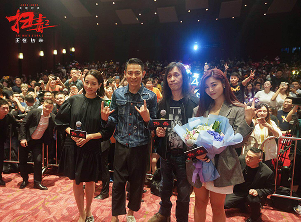 7月10日,《扫毒2》来到上海路演,无论影院还是商场,所到之处人流密集,人群尖叫声浪高到几乎没有人在意台上的邱礼涛、林嘉欣、卫诗雅等主创说了些什么。此起彼伏的声浪高呼着“刘德华,我爱你”。这是刘德华伤后首次复出宣传的电影。2017年他受伤也恰逢上一次他与邱礼涛导演合作的《拆弹专家》的宣传期,他录了VCR在现场播放,承诺邱礼涛,“我会好快就跑跑跳跳、谈谈笑笑又出现啦!”