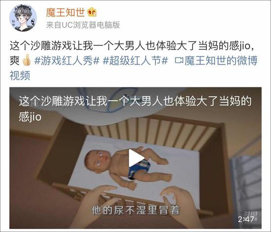 近日,@魔王知世 向网友详细“科普”如何“抚养”孩子的一段视频在网络上引发巨大争议。11日,他回应称,这段视频是自己玩的一段模拟母亲照顾孩子的游戏,只是觉得好玩向网友推荐而已。