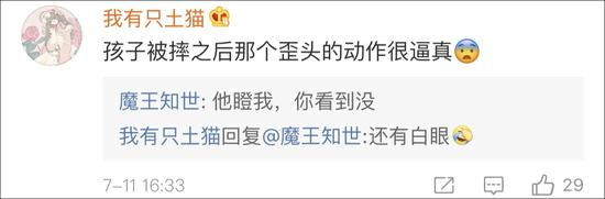 对于网友的质疑,博主多以调侃的口吻回应,比如“夸我会带孩子”、“你看到没,他(孩子)瞪我”;
