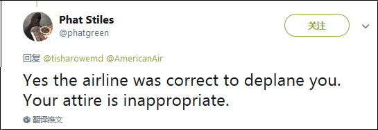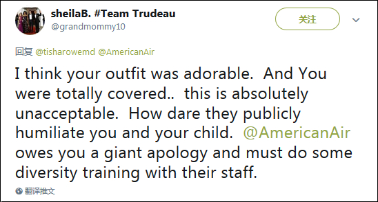 还有网友表示,洛维穿的衣服非常可爱,也遮住了应该遮的身体部位,(不让登机)是一件完全不可接受的事情,美航欠洛维一个道歉,且他们的员工必须接受一些针对多元化的非歧视培训。
