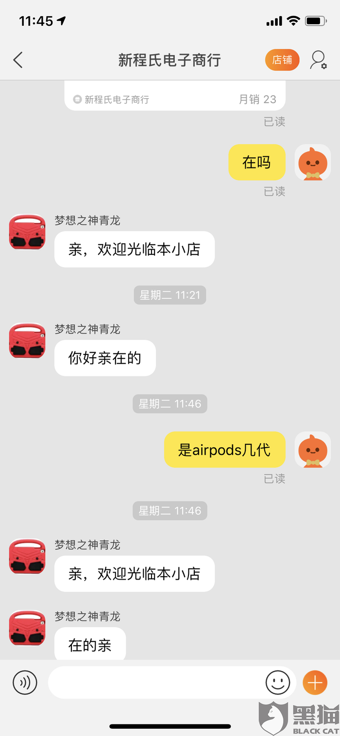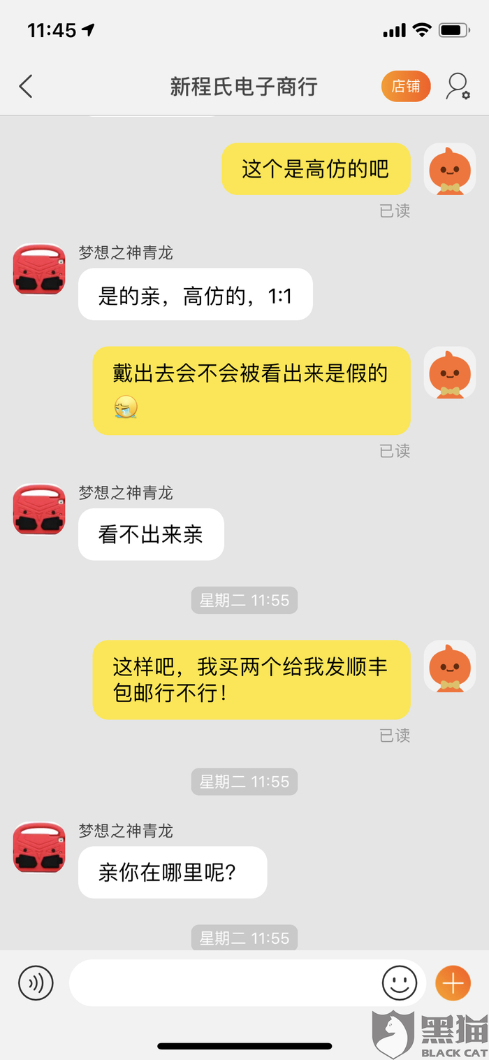 黑猫投诉:淘宝店铺名新程氏电子商行