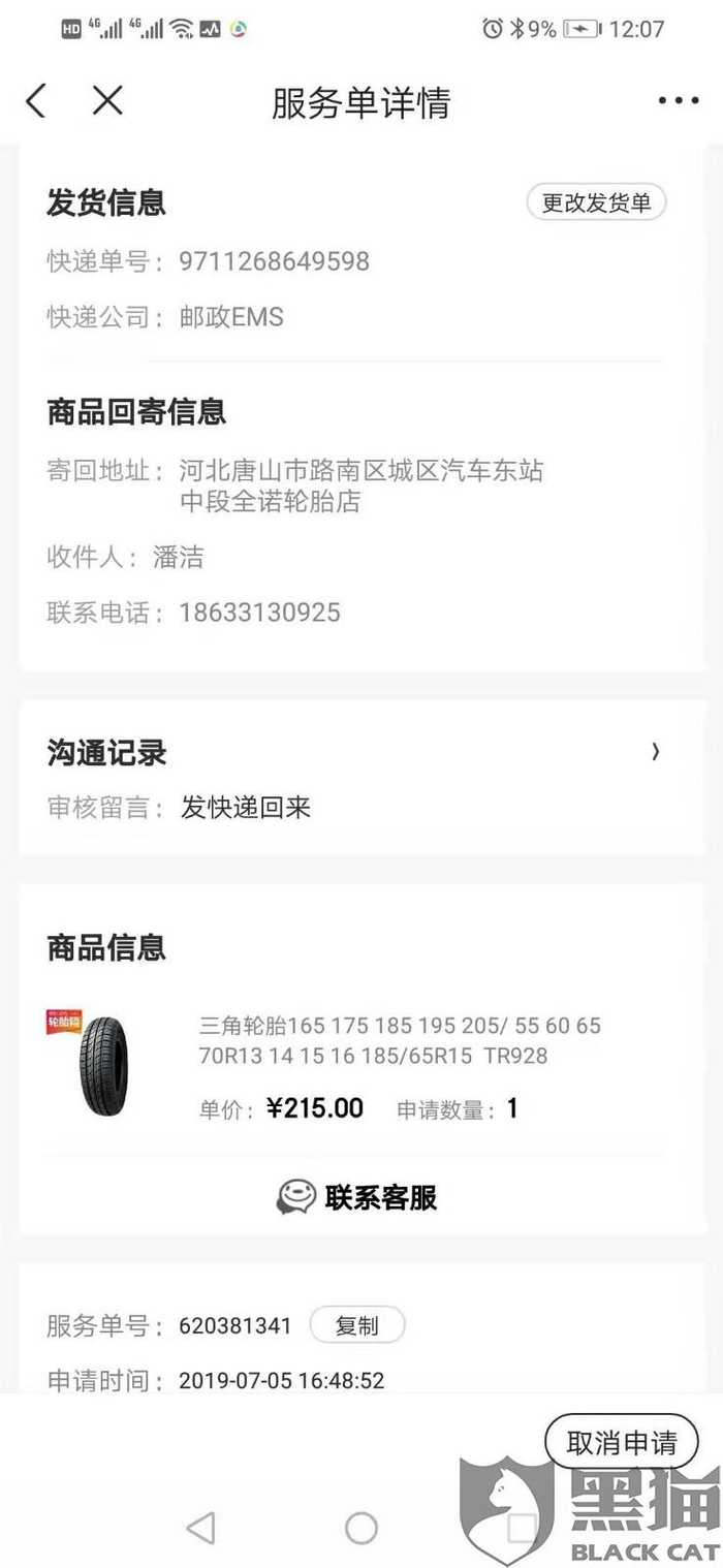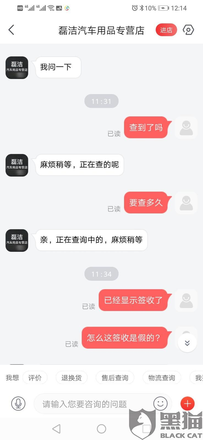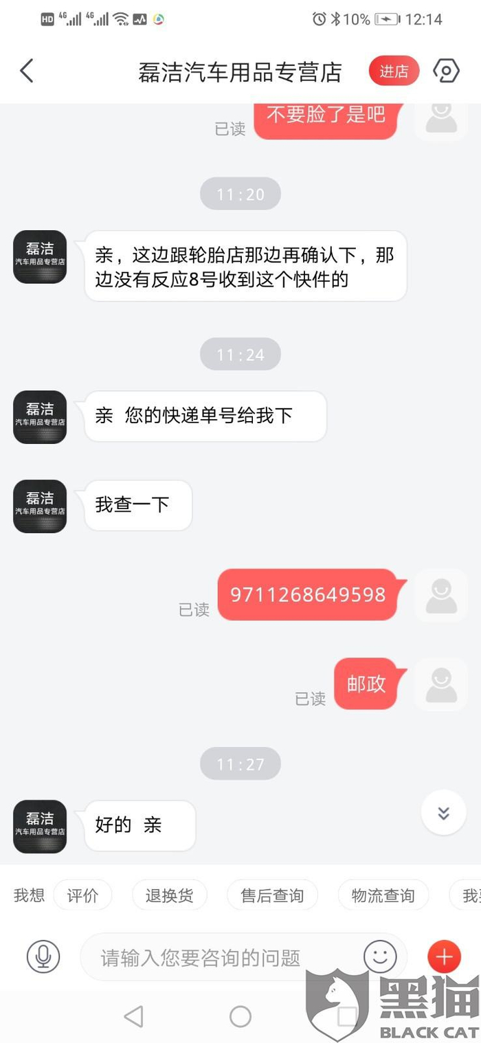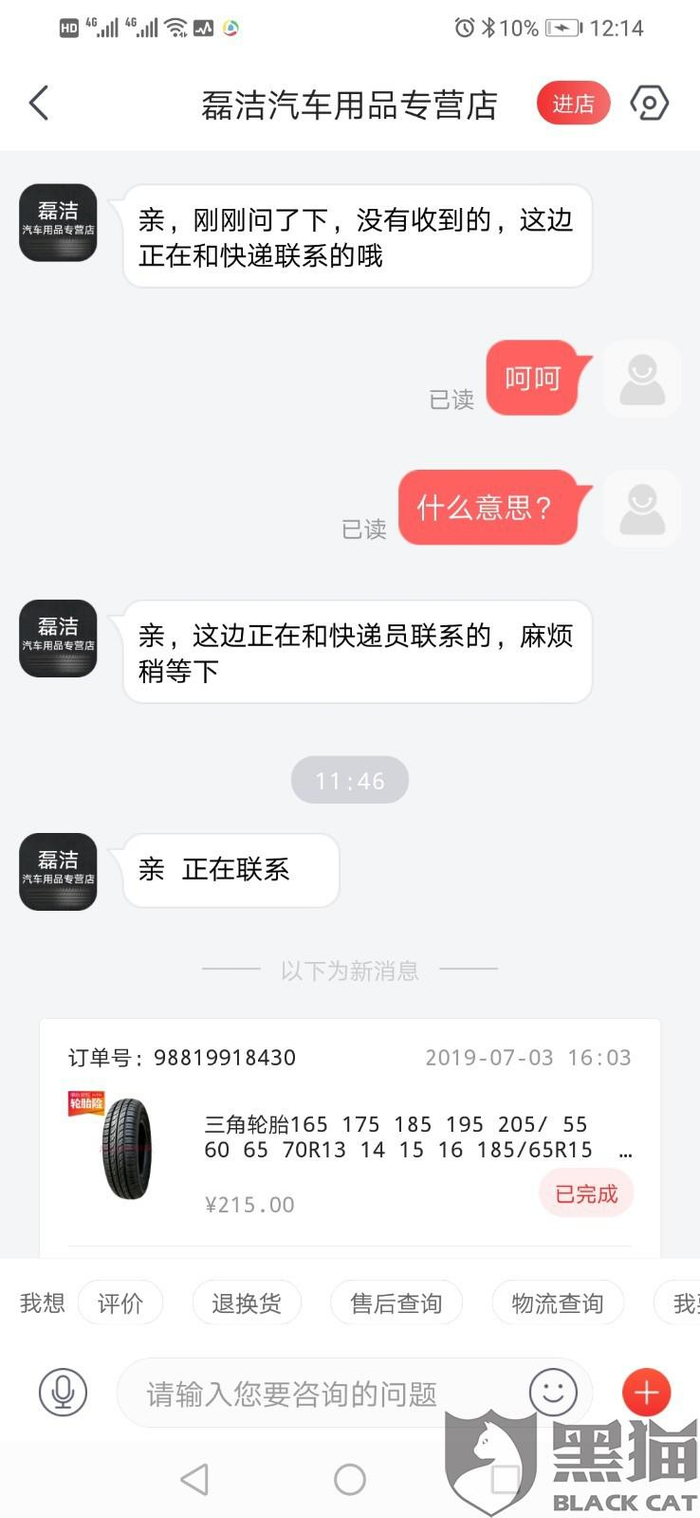 消费者“用户6142536637”在7月13日向黑猫投诉平台反映:“在京东第三方卖家买的2个三角轮胎,收到货物查看到,看到轮胎无胎毛,胎壁薄,怀疑假货。选择七天无理由退款,退回货物到卖家签收后后拒不退款。商家要求买家支付来回运费,他们运费40元,要给我扣除。我当时妥协了。后来查到包邮的产品七天无理由是不需要买家支付卖家运费的。货物7月6号发的邮政快递发出,18公斤,卖家7月8号收到我退回的货物后,一直拖延退款,到7月13号联系的时候和我说,他们没有收到我退回的轮胎。我的邮政快递单号9711268649***。邮政派送员电话我也打过,和我说确定给他们送到了,签收了。卖家客服还在无理拖延。一直以为京东的产品令人放心,然则这次事情让本人寒了心,这不就是典型的货物两空,欺骗消费者钱财,这个事情严重了就是欺诈!钱虽然不多,但是我一定要要个说法。”