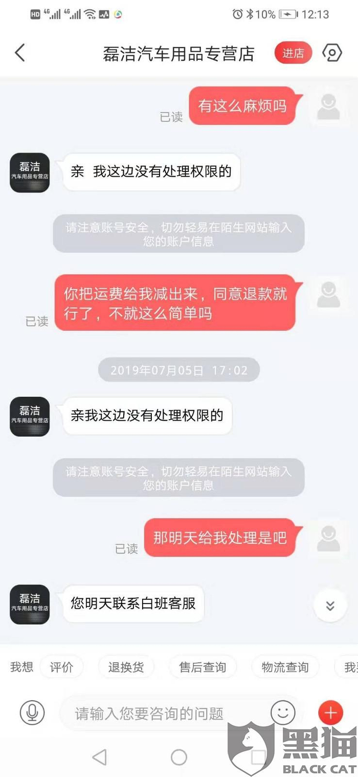 消费者“用户6142536637”在7月13日向黑猫投诉平台再次反映:“订单价格490元,本人看到京东打白条支付第一次优惠,所以用了京东白条支付的,给我优惠了50元,实际付款440。本人的退货运费是42元,邮政快递,18公斤。卖家给我电话联系,一定要我付运费,说加他微信转账就可以给我退款了。我和他解释说,七天无理由退货是不需要买家支付卖家运费的,卖家态度强硬巴拉巴拉一套一定让我支付。我妥协给他转账了。有记录,来回运费本人共支付82元。一开始说我把钱转给他后,会接着给我退款。我把钱转给他后,和我说取消退货,直接退款,本人不同意。然后和我说,财务不在,晚些时候处理,继续敷衍,拖延。”