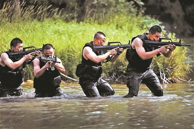 某水库区域内,层峦叠翠,碧波荡漾,30名特警队员脱去上身作战服,直挺挺地矗立在湖水中央,这便是“魔鬼周”水上科目开展的地方。