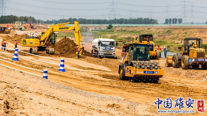 与此同时,雄安新区其他重点工程也正在高效有序地建设。在雄安新区南拒马河防洪治理工程现场,项目负责人李青山表示,该项目自6月1日开工以来,新区和施工企业严格防洪标准,精心组织施工,保证工程质量,确保南拒马河防洪治理工程具备抵御200年一遇防洪能力。目前,已完成土地清表45万立方米,修筑运输道路18公里,堤身土方填筑55万立方米。
