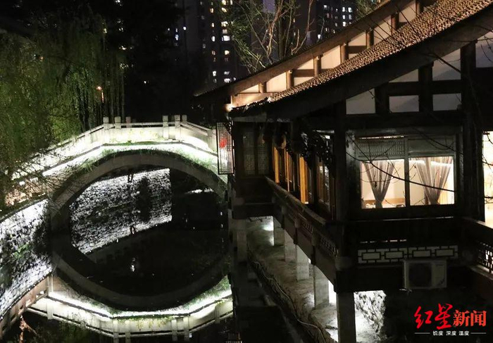水街有水,而后有街。肖家河由街头贯穿至街尾,流经高升桥、洗面桥、通锦桥、驷马桥、万福桥、万里桥,楼宇商肆皆依水而建。白昼里的肖家河,是A面的水岸。