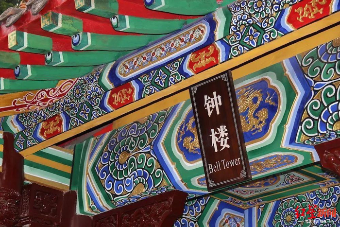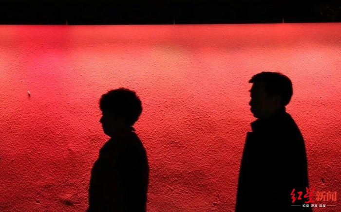 山门一关,外宾便不能进入了。而寺庙的院落的墙根处,倒成了打卡拍照的好去处。行人由牌坊而入,在寺庙的院墙上留下剪影,上演了一场“红”与“黑”的故事。