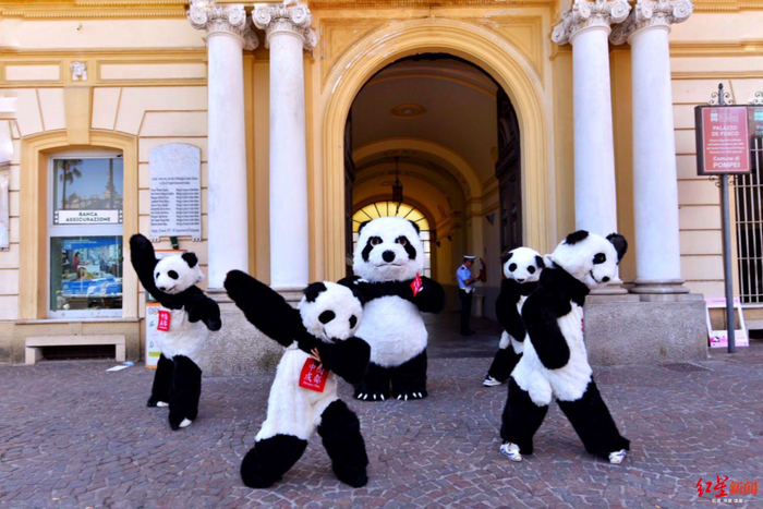可以这么说,要说这几天,那不勒斯街头最靓的崽,最耀眼的星,非这5名“熊猫人”莫属。他们体型巨大,憨态可掬,热情活泼,满足了那不勒斯市民对熊猫的全部想象和要求。在咖啡馆,在街头,在双层巴士上,任何所到之处,“熊猫人”永远最先被注意到,被索要拥抱最多。