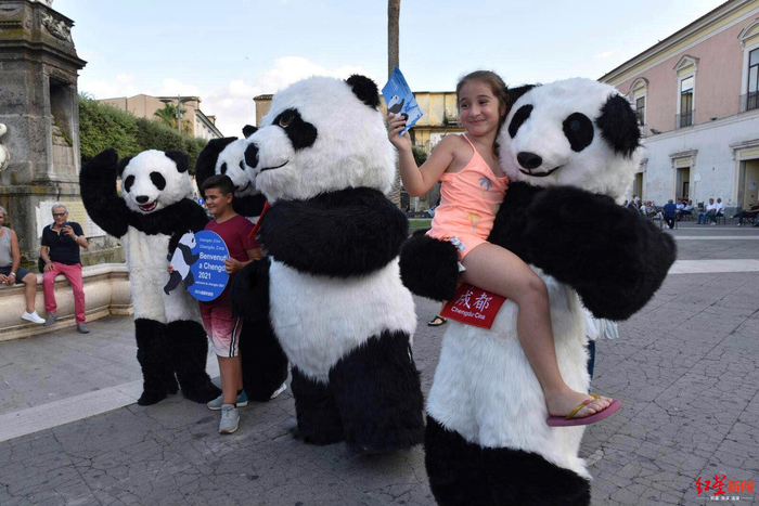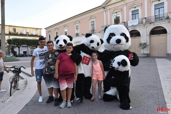 据王成志介绍,本次活动运送到那不勒斯的熊猫玩偶服装,有好几种形态,高的玩偶服装高度大约2米,重达几十斤。那不勒斯最近的天气都很好,日间30度的高温下,扮演这些角色穿上玩偶服装确实是一件非常辛苦的事情。不要说穿上玩偶服,就是抱着都觉得热。如果是跳“熊猫摇摆舞”,按更是跳完马上一身汗。而且这次活动正好赶上周末,那不勒斯还有一定数量的游客,不夸张地说,只要有小朋友看到了“熊猫人”,很少有小朋友错过与“熊猫人”的互动。