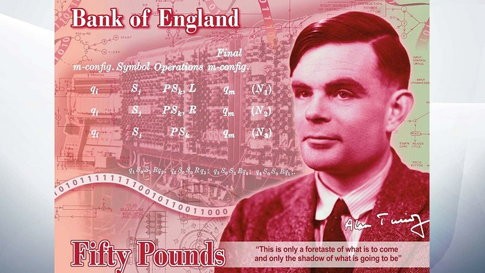英国著名数学家、计算机科学之父、人工智能之父、第二次世界大战密码破译者艾伦·图灵登上新发行的50英镑钞票的封面。