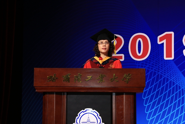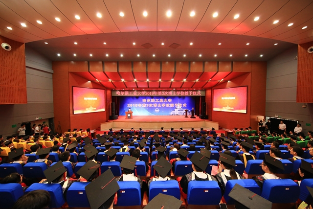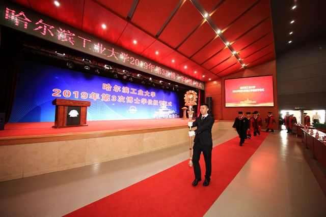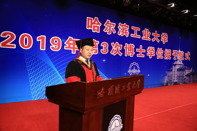 副校长丁雪梅主持毕业典礼并宣读了《哈尔滨工业大学学位委员会关于授予博士学位的决定》。经我校学位委员会第170次会议审议通过,共有366人获得博士学位,其中29人获理学博士学位、307人获工学博士学位、29人获管理学博士学位,1人获法学博士学位。