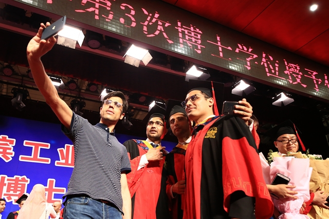 来自德国的博士毕业留学生代表思万激动地说:哈工大的学术氛围非常好,在学校、导师和同学们的热情帮助下,我获得了极好的先进的科学化教育。我虽然即将离开母校,但是母校“规格严格,功夫到家”的校训会始终伴随着我们,作为未来工作生活的行动指南。