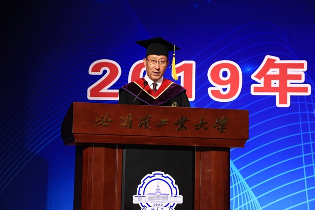 三要写好奋斗主题词,共续百年荣光。艰难困苦、玉汝于成。只有奋斗的人生才称得上幸福的人生。奋斗这一时代的主题词,始终是哈工大的最强音。近百年的办学历史,对于哈工大人来说是一部筚路蓝缕、披荆斩棘的奋斗诗篇。在民族复兴的伟大进程中,一代又一代哈工大人聚集在哈工大“八百壮士”精神的旗帜下,不忘初心、砥砺奋斗,创造了一个又一个奇迹。作为哈工大校友的新鲜血液,希望你们一定要不驰于空想、不骛于虚声,静心沉潜、久久为功,把创业最终落实在“奋斗”两个字上,汇聚磅礴力量,在新时代的壮阔洪流中共同书写哈工大新的辉煌。