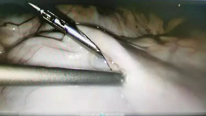 “从腹腔镜看到,林小姐腹腔内的巨大肿瘤已达肝脏下缘,充满盆腹腔,能做腹腔镜微创手术非常不容易。”温国群表示,因为林小姐体内的肿瘤太大,手术操作起来非常困难,稍有不慎,不但无法取出囊肿,腹腔镜手术器械还极易伤及周围其他的器官组织,造成无法想象的后果。