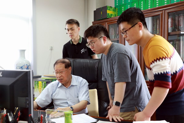 在闻邦椿院士的办公室,一块镌刻着“德才兼备的科学家、学生爱戴的教育家、聪明睿智的思想家—闻邦椿教授全体学生”几行字的金色牌匾,仿佛在向这位丹心育人、负重前行的老教授默默致敬。