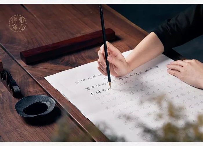 市面毛笔为控制价格多选用材质一般的毛笔,但为了让你有良好的抄经体验,我们毫不犹豫地用了纯狼毫毛笔。纯狼毫毛笔开锋尖细,书写流利,适合用来抄经。