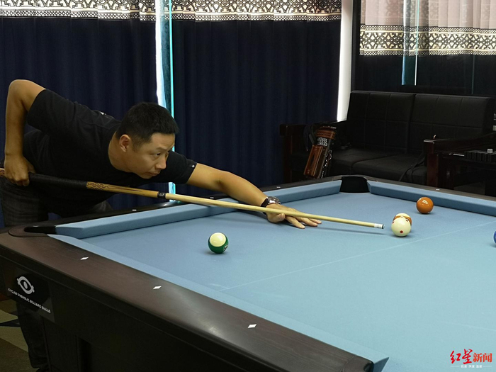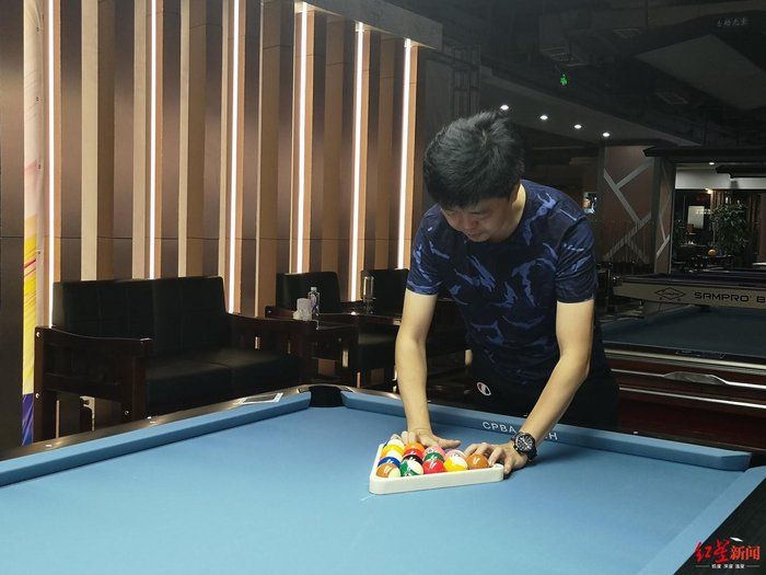 7月19日,红星新闻记者来到四川成都市青羊区击动元素台球俱乐部,在一片台球四散撞击的声音中,见到了2019成都世警会台球项目负责人、总裁判长张涛,他也是台球项目国际级裁判员。